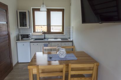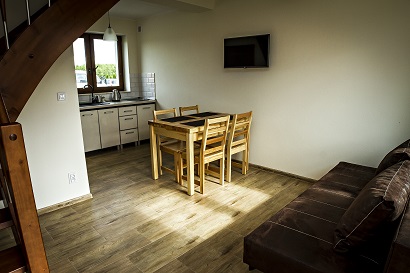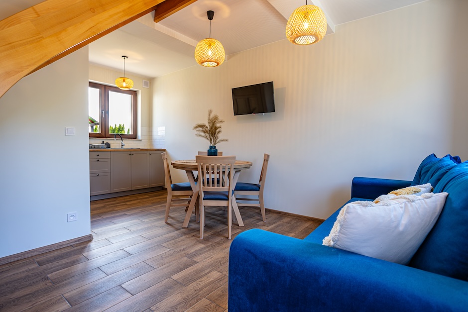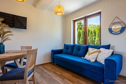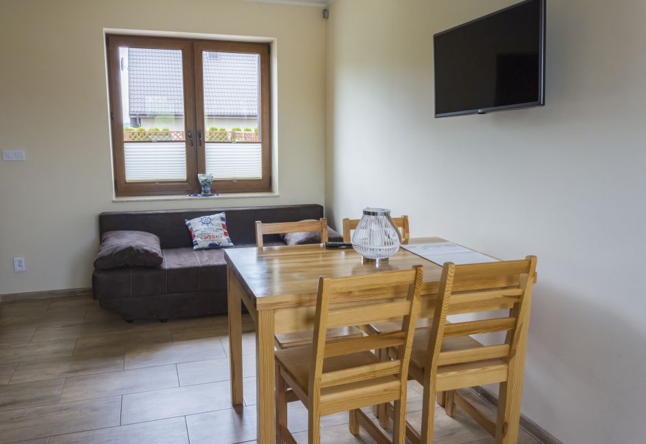 - pokój dzienny z wygodną rozkładaną sofą z miejscem do spania dla dwóch osób,