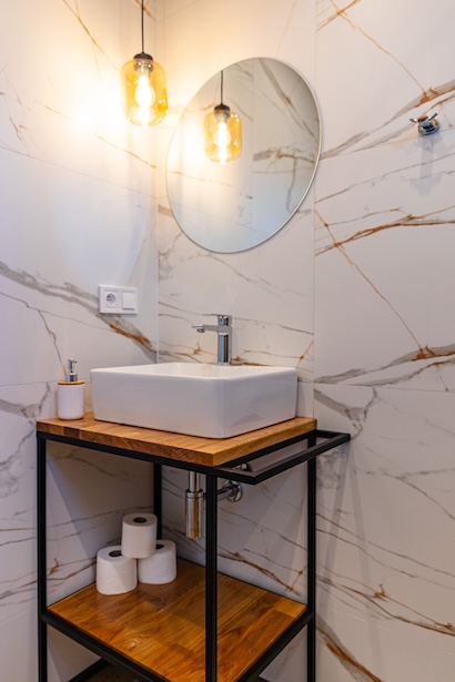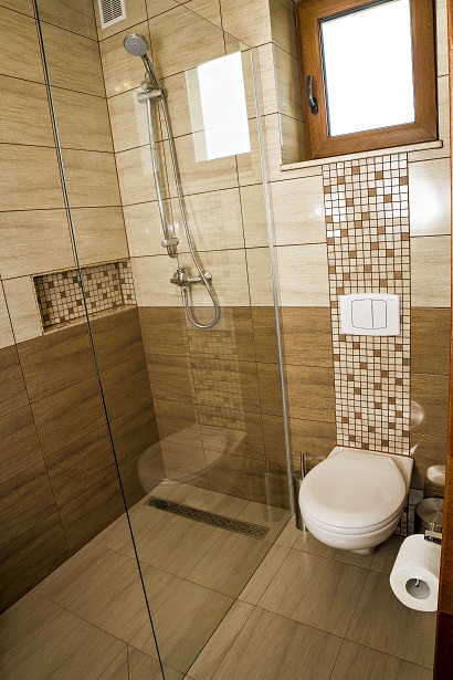 - łazienka z wc i prysznicem.