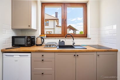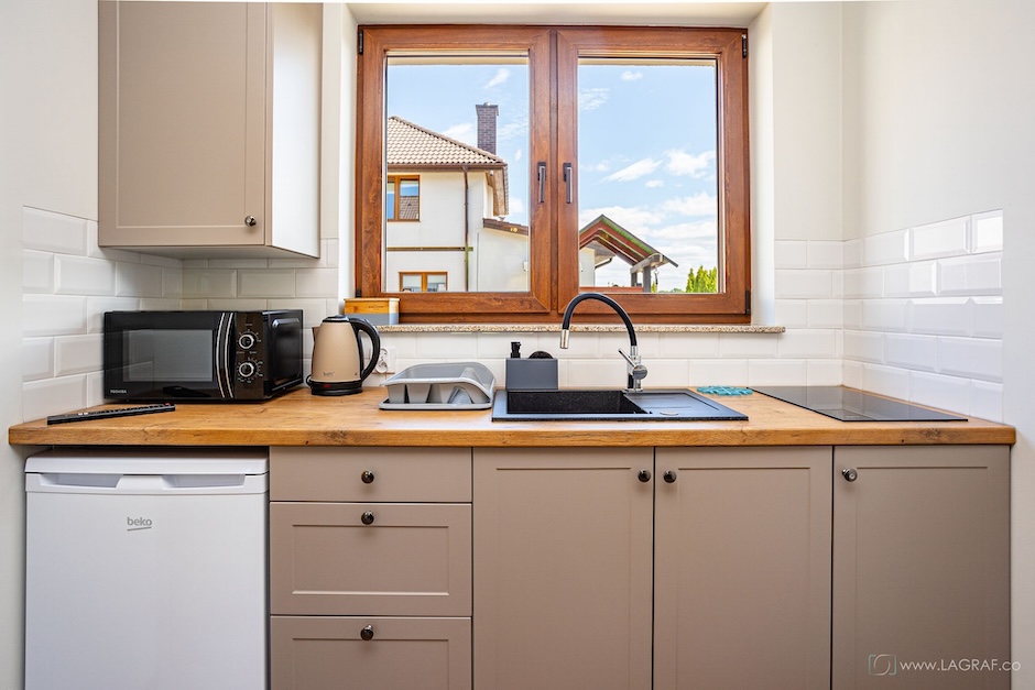 - kuchenka mikrofalowa, lodówka, kuchenka elektryczna, czajnik,