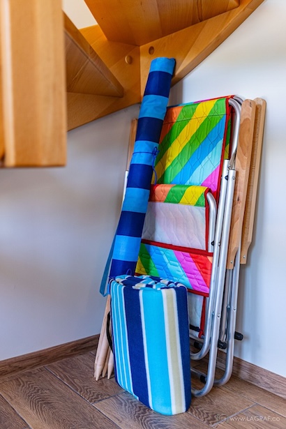 - koc plażowy, dwa leżaki, parawan.