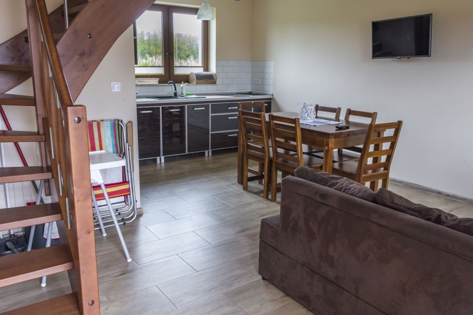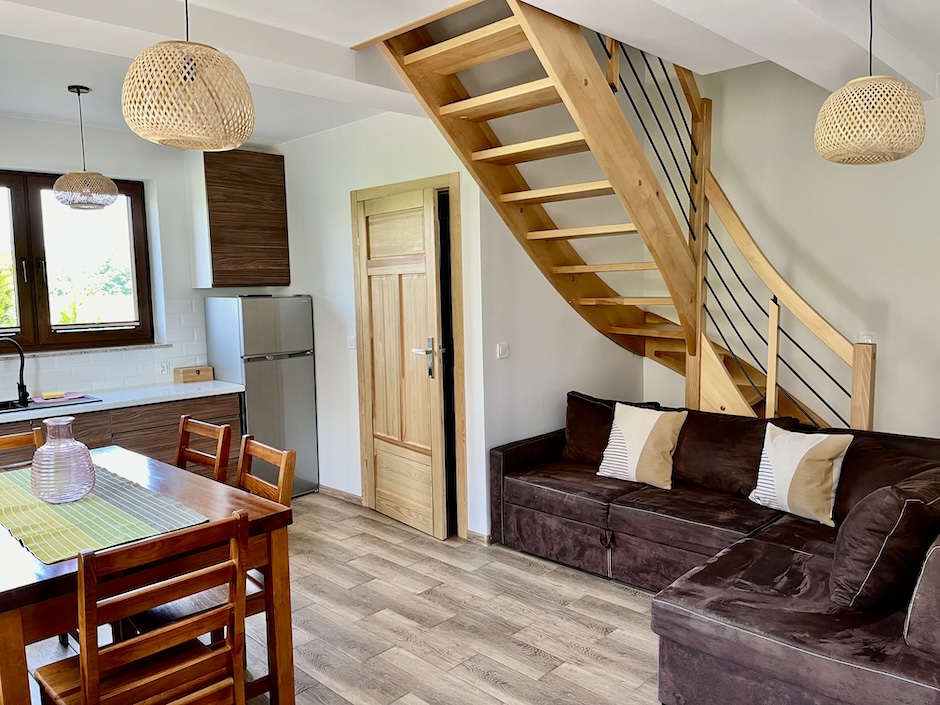 - pokój dzienny z wygodnym rozkładanym narożnikiem z miejscem do spania dla dwóch osób,
