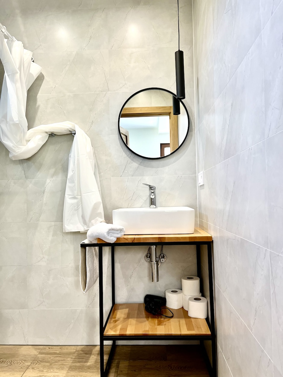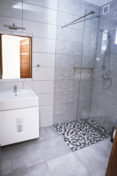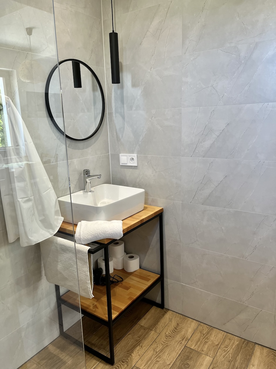 - łazienka z wc i prysznicem.
