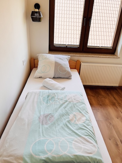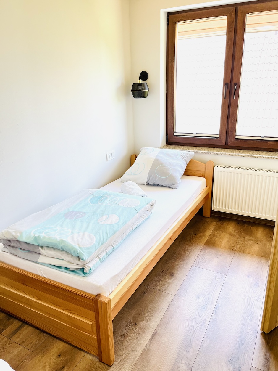 - sypialnia 1 - wyposażona w jedno łóżko małżeńskie oraz łóżko pojedyncze,